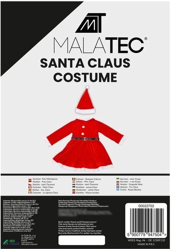 Maak indruk met het feestelijke kostuum Malatec Sneeuwvlok Mevrouw Claus, dat de kerstmagie belichaamt. Dit elegante en comfortabele kostuum is gemaakt van een zachte stof die velours imiteert en wordt doordacht geleverd met een hoed en een riem. Het is de ideale keuze voor kerstfeestjes, promoties of themabijeenkomsten.