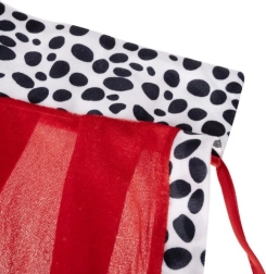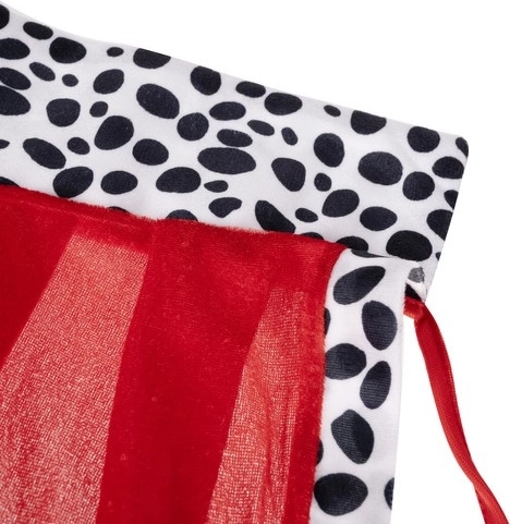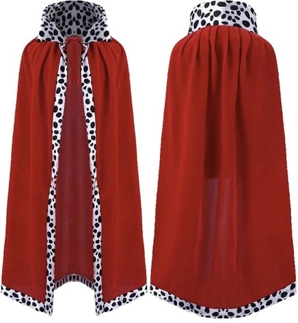 De rode mantel met zwart-witte “dalmatïer”-zoom oogt majestueus, voelt zacht aan en blijft dankzij het strikkoord goed op de schouders zitten.