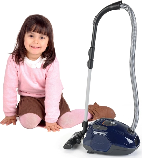 De stofzuiger is uitgerust met een werkende zuigfunctie (voor lichte polystyreenbolletjes), geluidseffecten die aan echt gebruik doen denken en een draaiknop die 5 vermogensniveaus imiteert. Dankzij de wieltjes is hij makkelijk te verplaatsen en de parkeervergrendeling van de zuigmond aan de onderzijde vergemakkelijkt het dragen en opbergen van het speelgoed.