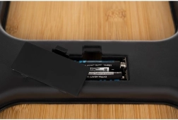 Automatisch uitschakelen na 8 seconden bespaart batterij. De weegschaal werkt op 2× AAA en beschikt over een praktische indicator voor bijna lege batterijen.