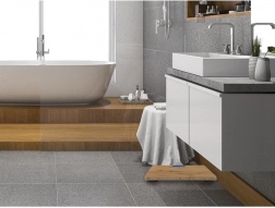 - natuurlijke bamboe plaat die past in een moderne badkamer