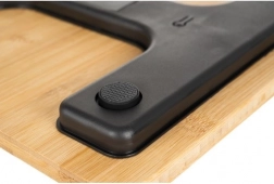 Duurzaam bamboe oppervlak, prettig aanvoelend, en anti-slip voetjes voor veilig wegen, zelfs op gladde tegels.