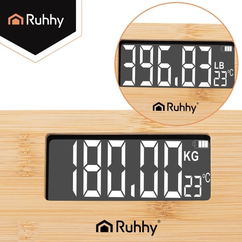 Deze elegante bamboe weegschaal combineert een natuurlijke uitstraling met moderne technologie. Het overzichtelijke LCD‑display zorgt voor eenvoudig aflezen, terwijl de automatische uitschakeling energie bespaart. Dankzij de antislipvoetjes is gebruik veilig, ook op gladde vloeren.
