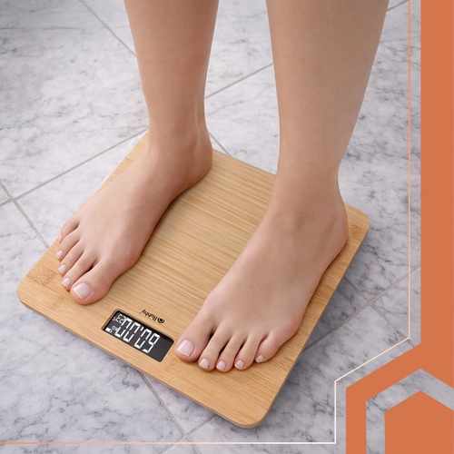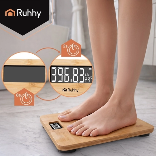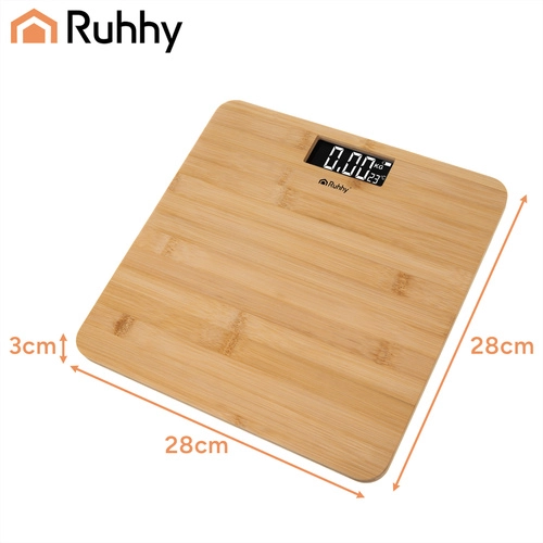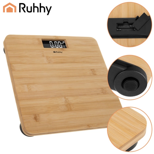 Stijlvolle bamboe personenweegschaal met een groot LCD‑display die uw gewicht nauwkeurig meet tot 180 kg. Beschikt over automatische uitschakeling na 8 seconden, antislipvoetjes voor veilig gebruik en een handige batterij‑indicator. Ideaal voor dagelijks gewichtsbeheer, sporters en mensen in een afslanktraject.