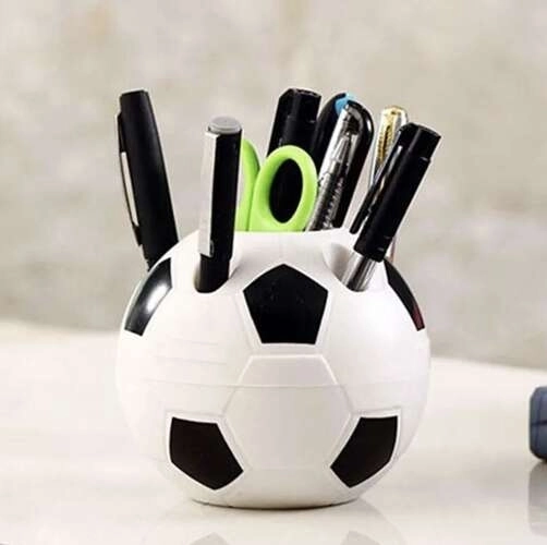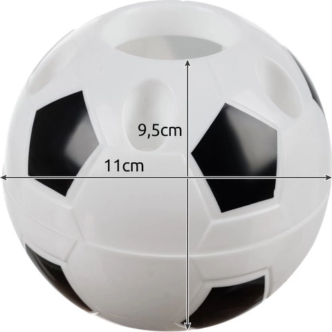 Breng leven in je bureau met een originele organizer in de vorm van een voetbal. De praktische indeling helpt het werk en studeren te stroomlijnen – alles wat belangrijk is, heb je overzichtelijk binnen handbereik. Robuust plastic in zwart-wit past mooi bij moderne interieurs en kinderkamers.