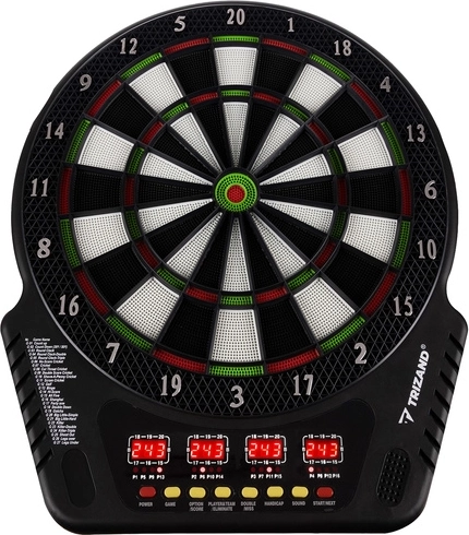 Geniet van een nauwkeurig en leuk spel met het krachtige elektronische dartbord TRIZAND voor 1–16 spelers. Het biedt 27 spellen en 243 combinaties, LCD-displays voor een duidelijk scoreoverzicht, een speeloppervlak met diameter 34,5 cm, volumeregeling en zowel netstroom- als batterijvoeding. In de set vind je 6 darts en 24 reservepunten.