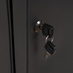 De kast wordt vergrendeld met de meegeleverde 2 sleutels. Voorbereide gaten en een montageset (pluggen en schroeven) maken snelle bevestiging aan de muur mogelijk.