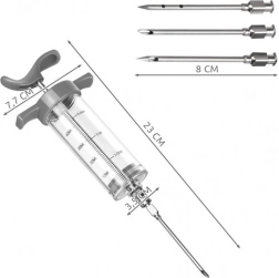 Deze keukeninjectiespuit is ideaal voor thuis roken, braden en grillen. Hiermee kun je pekel, bouillon en marinades rechtstreeks in de vleesvezels injecteren, wat de marineertijd aanzienlijk verkort en zorgt voor gelijkmatig zouten en kruiden. Het transparante lichaam met ml-schaal maakt precieze dosering eenvoudig.