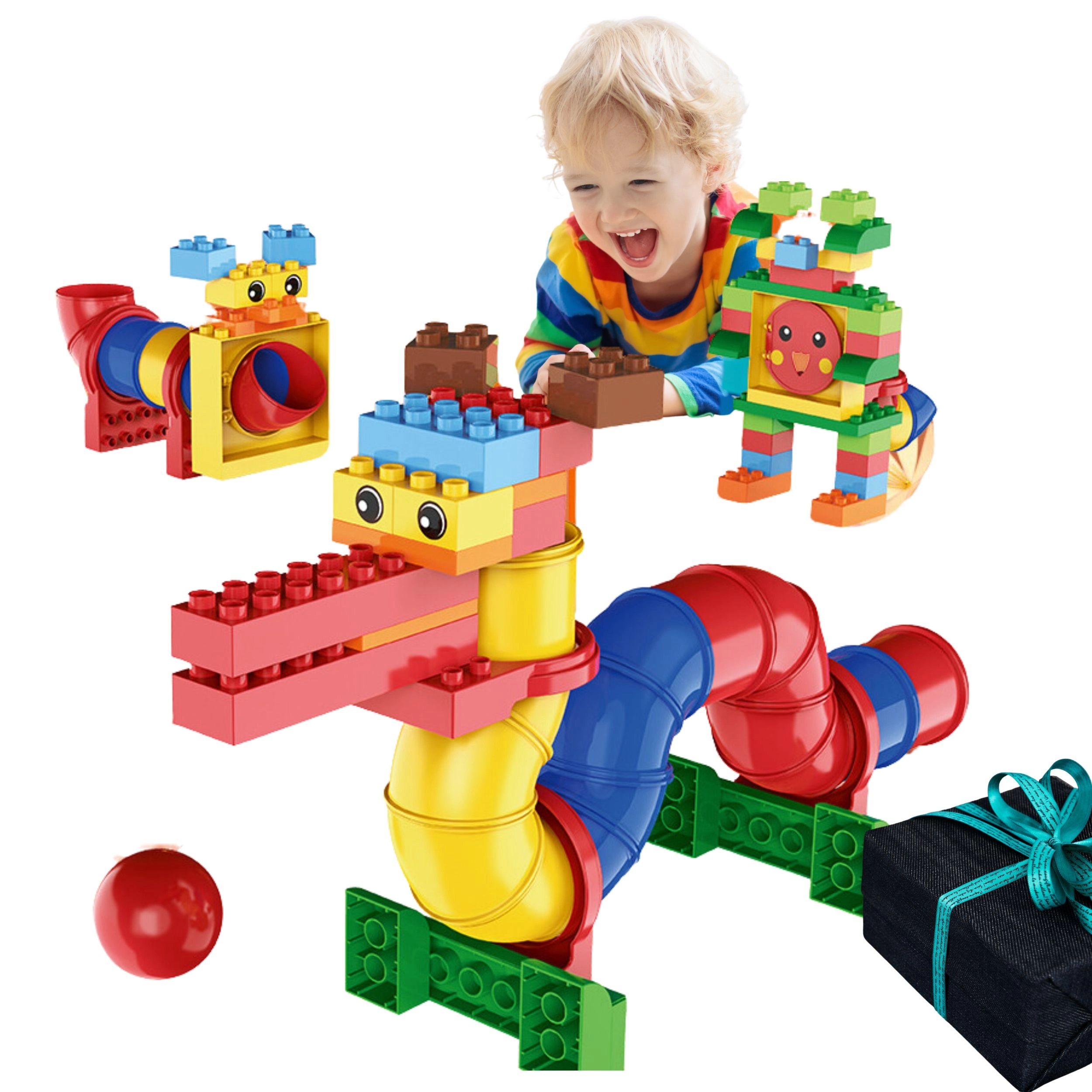 De bouwset biedt talloze speelmogelijkheden: kinderen kunnen tot 20 verschillende modellen bouwen en experimenteren met hoe een knikker door de buissegmenten rolt. De grotere, “chunky” onderdelen zijn comfortabel voor kleine handjes en stimuleren zelfstandig ontdekken en creativiteit.