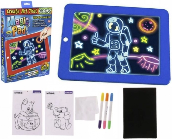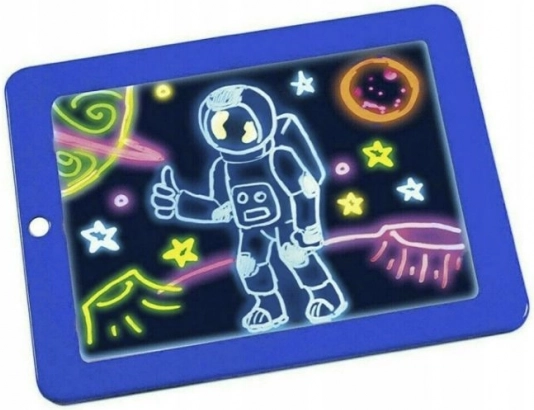 De magische 3D tekentablet met stiften is een geweldig hulpmiddel dat kinderen veel plezier biedt en tegelijk educatief is. Deze tablet stimuleert de verbeelding, traint de fijne motoriek en is nuttig bij het leren schrijven en rekenen. Ideaal om thuis mee te spelen, tijdens een pauze, bij familie- of vriendbezoek, of onderweg in de auto of trein. Dankzij het praktische formaat past hij in een handtas of kinder rugzak, waardoor hij ook handig is in de wachtkamer bij de dokter. De magische 3D tekentablet heeft LED-achtergrondverlichting, waardoor tekeningen aantrekkelijk worden en geweldig uitkomen in een verduisterde ruimte.