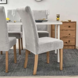 De grijze stoelhoes is ontworpen om bescherming te bieden tegen vlekken en mechanische schade. Het sterk elastische materiaal zorgt voor een universele maat die zich perfect aanpast aan de meeste stoelen. Hierdoor blijft de hoes stabiel en stevig op zijn plaats.