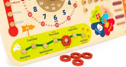 Dankzij kleine rode houten schuifjes kunnen kinderen de huidige dag, maand, belangrijke data of het weer aangeven, waardoor oefenen leuker en interessanter wordt.