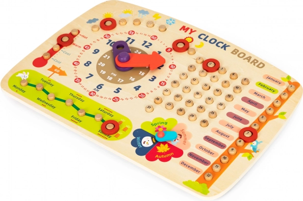 Het bord stelt kinderen in staat om te leren over de dagen van de week, maanden en seizoenen, wat een geweldige manier is om spelenderwijs motorische vaardigheden te ontwikkelen.