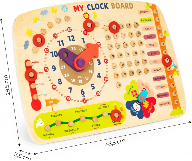 Het houten leerschoolbord van ECOTOYS is het ideale hulpmiddel voor kinderen om tijd, datums en seizoenen te leren herkennen en begrijpen. Dankzij de kleurrijke grafische elementen en Engelse beschrijvingen is leren leuk en boeiend. Het bord is gemaakt van hoogwaardig hout, wat niet alleen prettig aanvoelt maar ook zeer bestand is tegen beschadigingen.