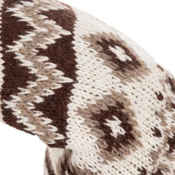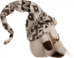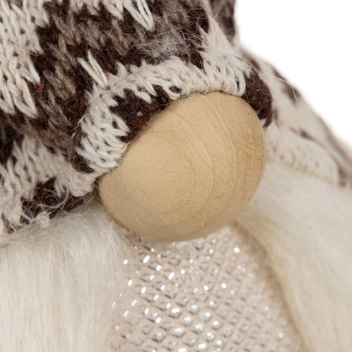De kabouter met gebreide muts met patroon en kunstbont biedt een gezellige rustieke uitstraling, ideaal voor feestelijke decors.