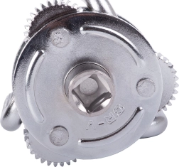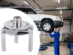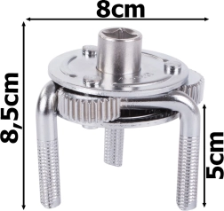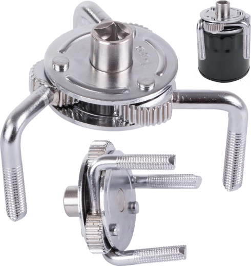 De oliefiltersleutel is gemaakt van duurzaam metaal dat zelfs zware taken aankan. De drie armen zorgen voor een stevige grip bij het losschroeven van filters.