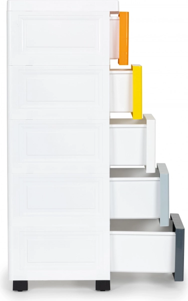 Vijf ruime lades in verschillende kleuren maken sorteren en snelle oriëntatie eenvoudiger. De ergonomische grepen aan de voorkant zorgen voor soepel in- en uitschuiven.