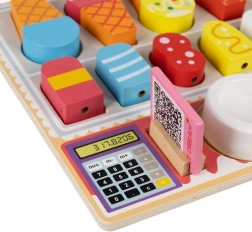 Deze stijlvolle houten ijssalon brengt voor kinderen de authentieke sfeer van een snoepwinkeltje. Dankzij de levendige kleuren en talloze combinatiemogelijkheden leren kinderen kleuren, vormen en groottes herkennen en ontwikkelen ze spelenderwijs cognitieve en sensorische vaardigheden. De houten elementen liggen fijn in kleine handjes en ondersteunen een juiste greep en geduld bij het stapelen van bolletjes en ijslolly’s.