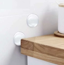 Bescherm uw muren, deuren en meubels stijlvol en onopvallend. Transparante zelfklevende stootdoppen van RUHHY van hoogwaardig polyurethaan dempen stoten van klinken en randen en voorkomen zo groeven, afschilferingen en slijtage. Dankzij het heldere design passen ze in elk interieur zonder de uitstraling van de ruimte te verstoren.