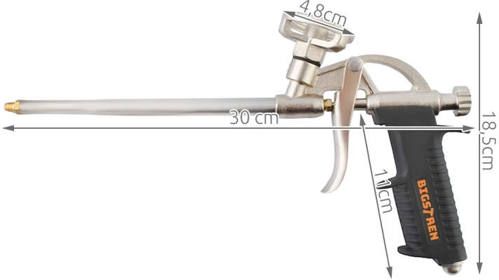 De praktische stelschroef maakt een fijne afstelling van de trekkergevoeligheid en de schuimhoeveelheid mogelijk voor maximale precisie zonder onnodig materiaalverlies. De beschermlaag minimaliseert de aanhechting van schuim, wat het reinigen en het onderhoud van het gereedschap aanzienlijk vereenvoudigt.