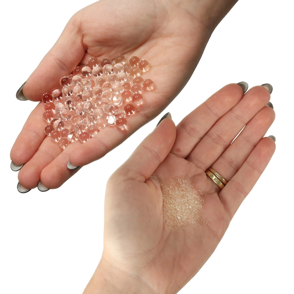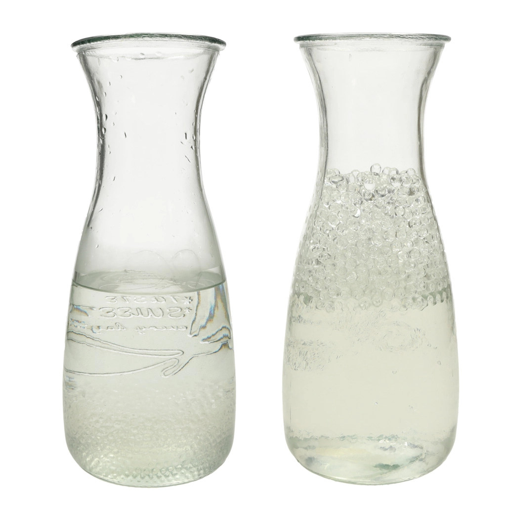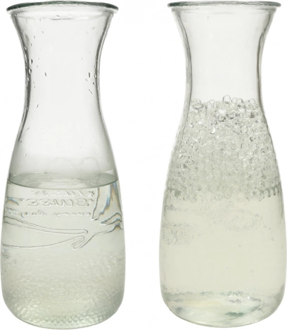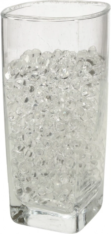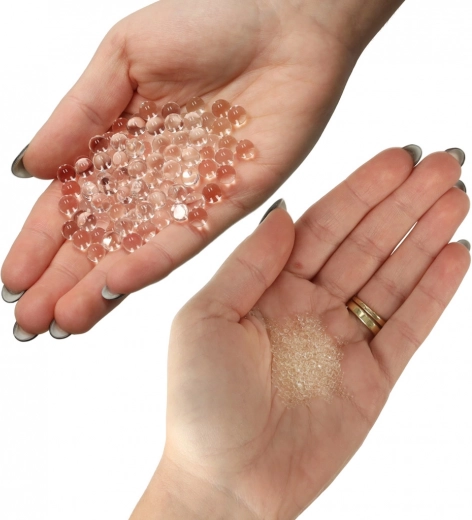 Transparante hydrogelparels zwellen na onderdompeling in water binnen 3–4 uur op tot een diameter van 7–8 mm. Dankzij hun hoge wateropslagcapaciteit zijn ze geschikt als decoratief element in vazen, voor DIY-projecten en als hulpmiddel om de substraatvochtigheid van kamerplanten te behouden.