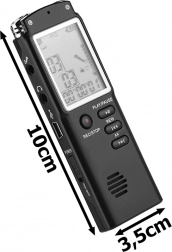 De dictafoon is klein, licht en gemakkelijk mee te nemen dankzij de afmetingen van 10 cm x 3,5 cm, waardoor het een ideale reisgenoot is.
