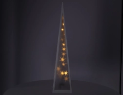 Kunststof piramide met een wit metalen frame, gevuld met sterren die in het midden van de piramide bewegen ✨