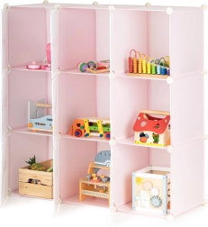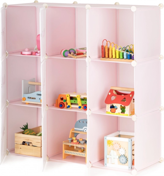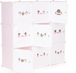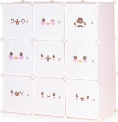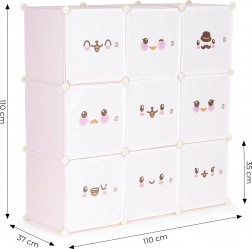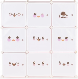 Deze modulaire kinderkast biedt overzichtelijke en leuke opslag voor speelgoed, boeken en kleine spulletjes. Negen kubussen met deurtjes en vrolijke motieven creëren een aangename omgeving en motiveren kinderen om zelfstandig orde te houden. Dankzij de flexibele configuratie pas je de vorm en indeling eenvoudig aan de ruimte en behoeften aan.