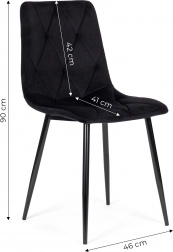 De ModernHome-stoelenset valt op door de zachte fluwelen bekleding met ruitstiksel, die luxueus oogt en tegelijkertijd prettig aanvoelt. Zwarte metalen poten zorgen voor stevigheid en stabiliteit, terwijl beschermende uiteinden krassen op de vloer voorkomen. Dankzij het veelzijdige design passen de stoelen perfect in de eetkamer, woonkamer, keuken en het kantoor.