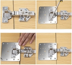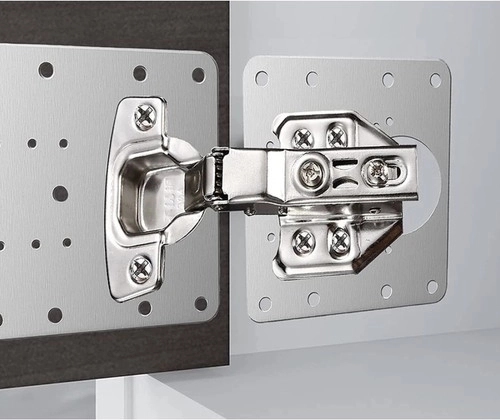 De set bevat 4 platen en schroeven voor montage, geschikt voor de meeste meubelscharnieren op de markt.