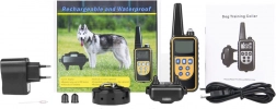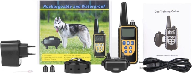 Technische specificaties: - Hoge kwaliteit afwerking - Verstelbare halsband (max. lengte 70 cm) - Bereik tot 800 m - Functies: licht, geluid, vibratie, elektrische impuls - Instelbare impulsen en LED-lamp - Ondersteunt tot drie ontvangers - Ontvanger: 3,5 cm x 3 cm x 6 cm, 65 g - Afstandsbediening: 14 cm x 4,5 cm x 1,5 cm - Kleur: zwart