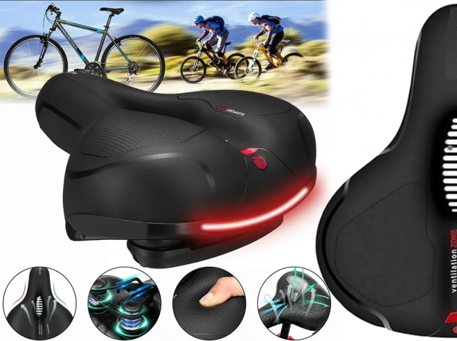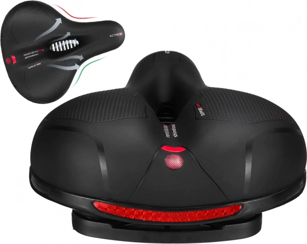 Dit ergonomische fietszadel kenmerkt zich door een zachte vulling van elastisch schuim en duurzaam kunststof materiaal dat bestand is tegen weersinvloeden.
