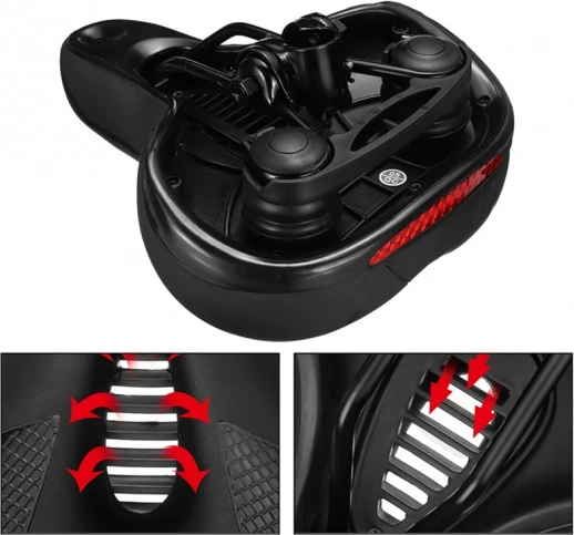 De veren absorberen oneffenheden in het terrein en verminderen de belasting van het lichaam tijdens het rijden.