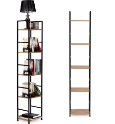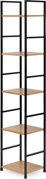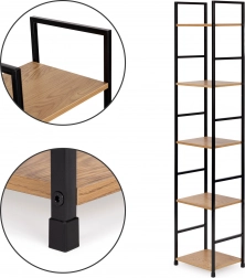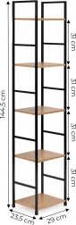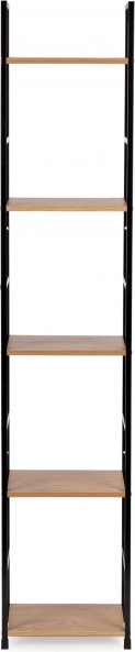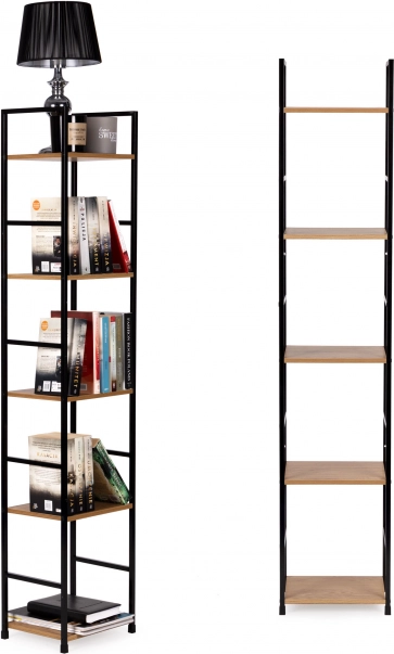Deze moderne plank in industriële LOFT-stijl is ideaal voor zowel kleinere als grotere interieurs. De smalle uitvoering bespaart ruimte, terwijl vijf planken voldoende plek bieden voor boeken, decoraties, planten en badkameraccessoires. Het poedergecoate metalen frame zorgt voor stabiliteit en een lange levensduur, de planken van MDF met houtdecor geven een warme, natuurlijke look.