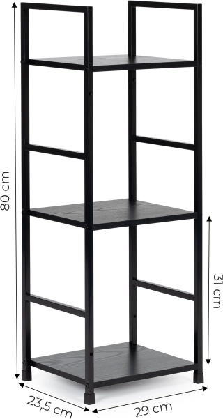 De plank biedt drie open niveaus voor het uitstallen van boeken, planten en accessoires, of voor het opbergen van handdoeken en cosmetica in de badkamer. De stabiliteit wordt ondersteund door beschermende doppen op de poten en de mogelijkheid tot wandbevestiging, wat vooral gezinnen met kinderen zullen waarderen.