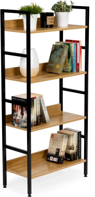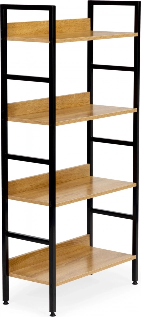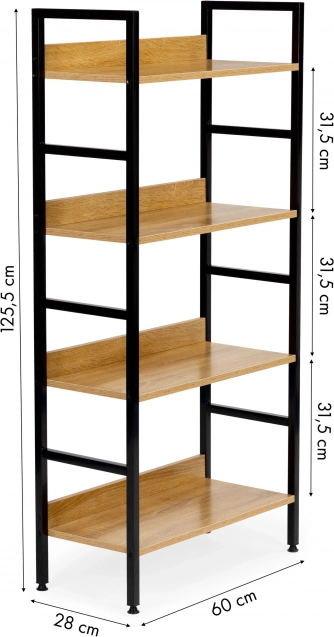 Stijlvol rek in loftstijl met een combinatie van hout en metaal brengt orde én design in je interieur. Biedt 4 ruime planken van MDF met houtdecor, een stabiel metalen frame met poedercoating en verstelbare pootjes met beschermende doppen. Dankzij de compacte afmetingen ideaal voor woonkamer, slaapkamer, hal en badkamer en kan aan de muur worden bevestigd voor maximale veiligheid.