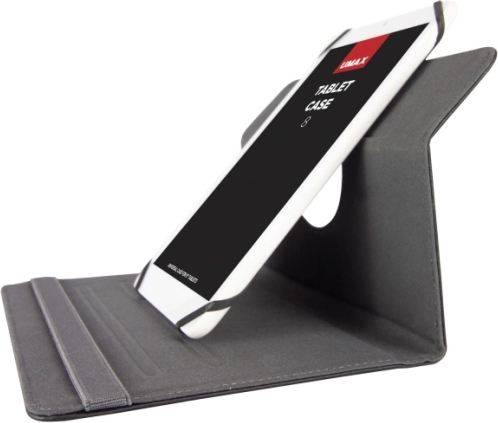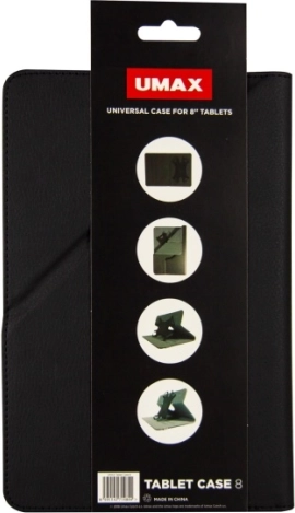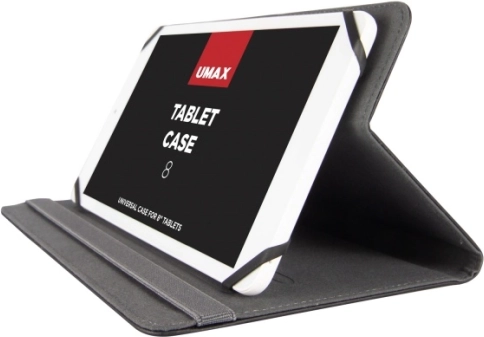 De universele UMAX-hoes voor 8″ tablets combineert een elegant folio-ontwerp met praktische bescherming voor dagelijks gebruik. De stevige voorflap beschermt het scherm, terwijl elastische hoekbanden de tablet met verschillende schermranden veilig vastzetten. De geïntegreerde standaard met meerdere kijkhoeken maakt het makkelijker om films te kijken, videogesprekken te voeren en onderweg te werken.