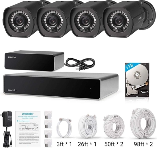 De installatie is eenvoudig, ook zonder technische kennis: sluit de recorder, repeater en camera’s aan – het systeem begint automatisch met opnemen. Toegang tot livebeeld en opnames is mogelijk via de Zmodo-app (Android/iOS), de Windows-app Zviewer, de webdienst van Zmodo of rechtstreeks via HDMI op een monitor. Camera’s met IR-LED en IR-cutfilter zorgen voor een helder beeld overdag en ’s nachts tot circa 20 m. De metalen behuizing met IP65-bescherming is ideaal voor zowel binnen- als buitengebruik.