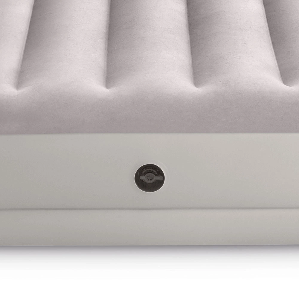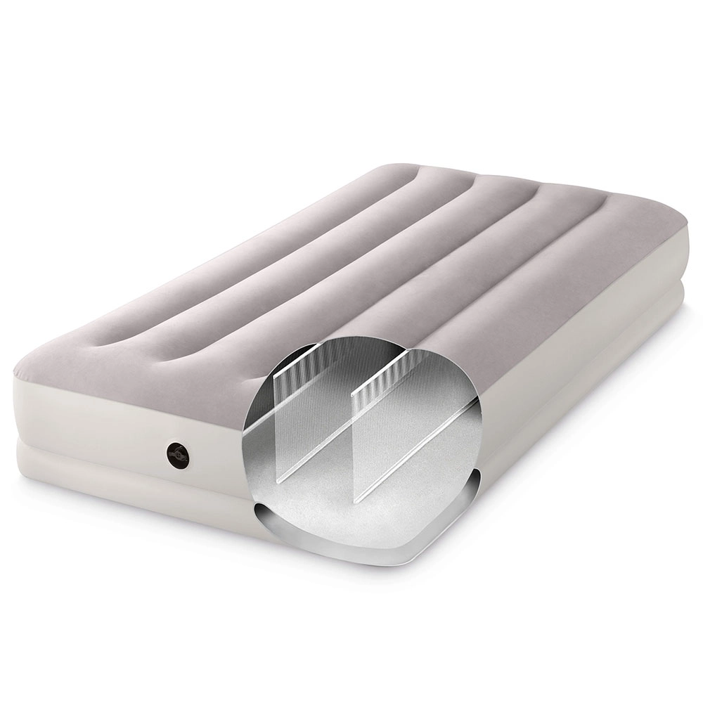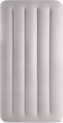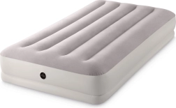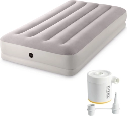 Praktisch opblaasbaar matras van INTEX met afmetingen 191 × 99 × 30 cm voor een comfortabele nachtrust van één persoon, thuis en onderweg. Dankzij de Dura-Beam Fiber-technologie is het stabiel en biedt het goede lichaamsondersteuning. Het aangename suède (flock) oppervlak is zacht aan de touch en antislip. Inclusief een compacte USB elektrische pomp voor snel opblazen en leeg laten lopen en een transportzak voor eenvoudig dragen.