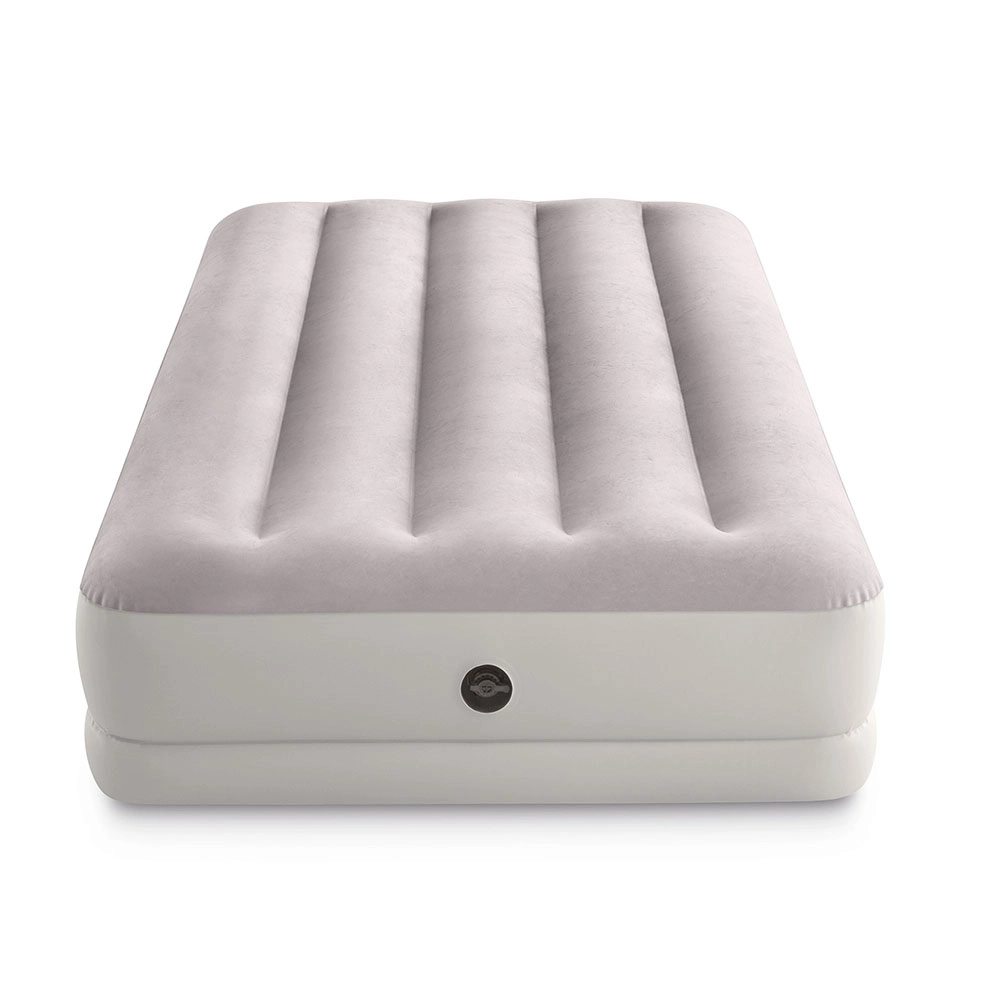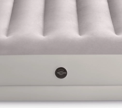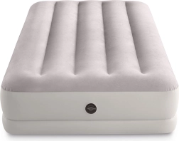 Het opblaasbed INTEX combineert duurzaam PVC-materiaal met een zacht geflockt oppervlak dat aangenaam aanvoelt en het slaapcomfort verhoogt. De verhoogde constructie met longitudinale kamers en interne verstevigingen zorgt voor stabiliteit zonder schommeleffect en een betrouwbare ondersteuning van de wervelkolom.