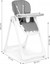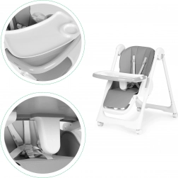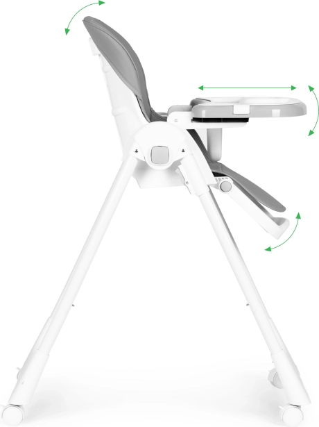 Dankzij de verstelbare rugleuning van rechtop tot bijna liggend, de verstelbare voetensteun en het schuifbare dienblad pas je de stoel eenvoudig aan de actuele behoeften aan. Het dubbele dienblad heeft verhoogde randen en een bekerhouder; de bovenste laag verwijder je na het eten gemakkelijk om te reinigen, het onderste vlakke blad is ideaal om te tekenen of te spelen.