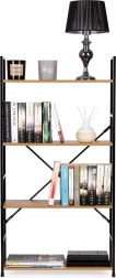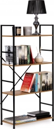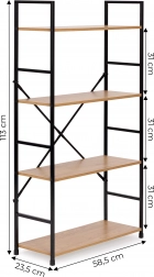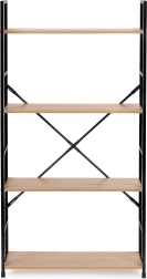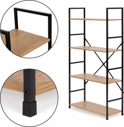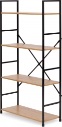 De constructie is gemaakt van poedergecoat metaal met poten voorzien van beschermende doppen tegen krassen op de vloer. De MDF-planken zijn afgewerkt met een houtlook fineer, bieden voldoende ruimte en de afstand tussen de planken is 31 cm.