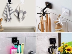 De haak kan eenvoudig geïnstalleerd worden met behulp van kleeflijm, die het product stevig op zijn plaats houdt. Dit ontwerp helpt ruimte te besparen en maakt uw huiselijke omgeving georganiseerd en overzichtelijk.
