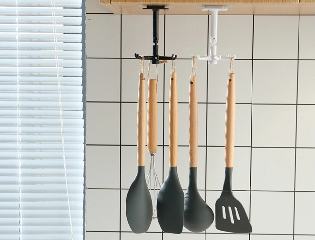 <\u002fdiv> <\u002fdiv>De haak is gemaakt van hoogwaardig plastic en ontworpen om een veelzijdige oplossing voor het ophangen te bieden, niet alleen van keukengerei, maar ook van badkameraccessoires zoals sponzen of handdoeken. Dankzij het 360° draaiend ontwerp<\u002fstrong> krijgt u snel en gemakkelijk toegang tot alle opgeslagen objecten.