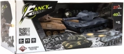 De set bevat alles wat je nodig hebt om meteen te spelen: 2 gedetailleerde tanks van 25 cm, elk op een eigen frequentie voor een eerlijk gevecht zonder storing. De bediening is intuïtief en de koepel draait over de volle 360°. Realistische geluids- en lichteffecten versterken de actie en de spelmodus met 'levens' bepaalt de winnaar van de strijd.