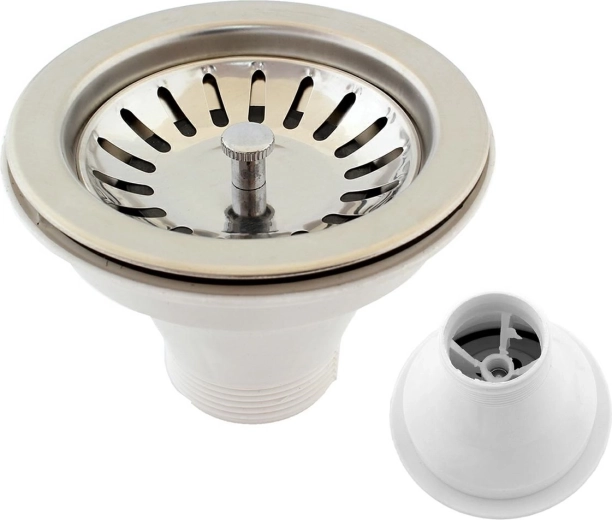 Stevige metalen gootsteenstop compleet met de benodigde accessoires voor installatie. Dankzij de standaardafmetingen plaats je hem eenvoudig in de keukengootsteen.