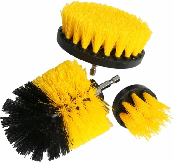 Verkrijg een praktische set van drie reinigingsborstels, geschikt voor gebruik met een boormachine of schroevendraaier. Deze universele opzet is ideaal voor het schoonmaken van diverse oppervlakken, van tegels en vloeren tot kranen en tapijten, en is geschikt voor zowel hobby- als professioneel gebruik. Nylon haren en metalen houders zorgen voor langdurig en probleemloos gebruik.