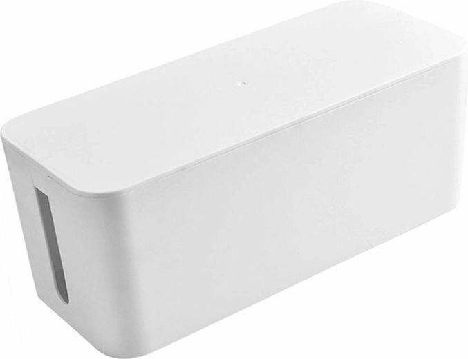 Zeer praktische container voor stekkerdozen en kabels. Hiermee kunt u een verlengsnoer samen met kabels binnenin verbergen en beschermen tegen toegang door kinderen. Naast veiligheidsredenen is het een uitstekende manier om kabels die onder of achter het bureau verspreid liggen te ordenen. De doos heeft een deksel dat strak kan worden afgesloten en twee zijopeningen waardoor kabels gemakkelijk kunnen worden doorgevoerd.