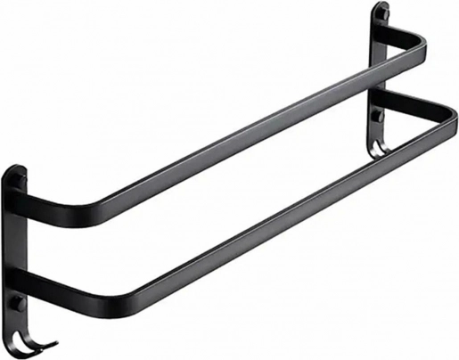 Stijlvolle metalen wandhanddoekrek in moderne loftstijl. Gemaakt van duurzaam aluminium met poedercoating in matte zwarte kleur, wat een lange levensduur en weerstand tegen vocht en slijtage garandeert. Dit praktische accessoire voor uw badkamer biedt twee armen voor het ophangen van handdoeken en extra haken onderaan voor nog meer opbergruimte.