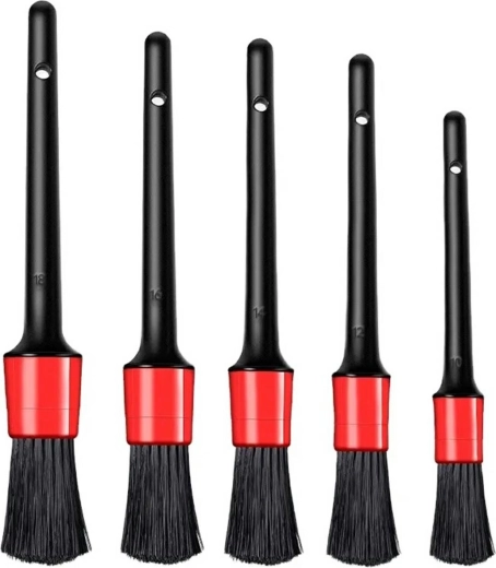 Deze set detailborstels is ideaal voor nauwkeurig onderhoud van het voertuiginterieur – van ventilatieopeningen en knoppen op het dashboard tot aan de naden van de bekleding. Zachte nylonharen nemen stof en kleine vuildeeltjes uitstekend op en zijn vriendelijk voor kunststof, vinyl en gelakte onderdelen.